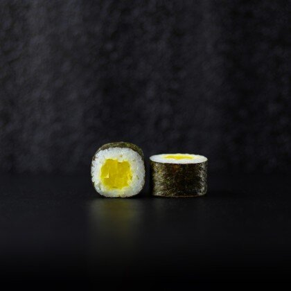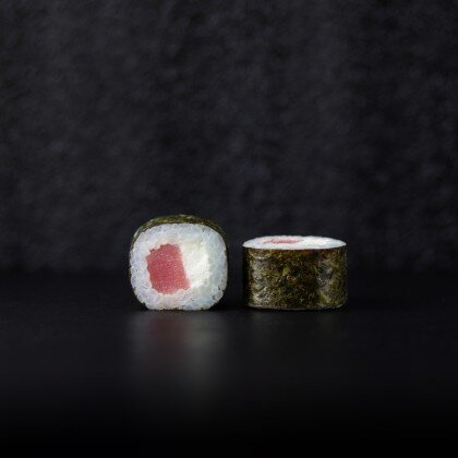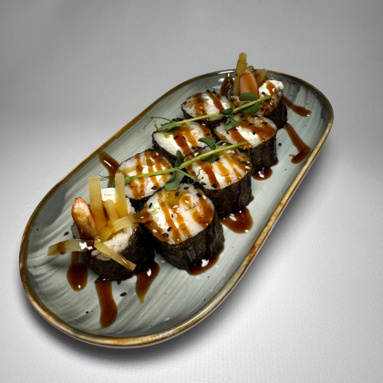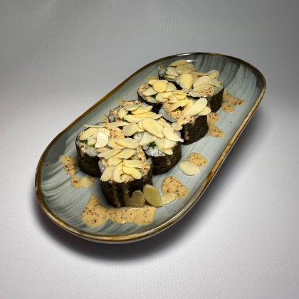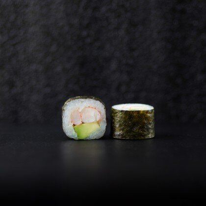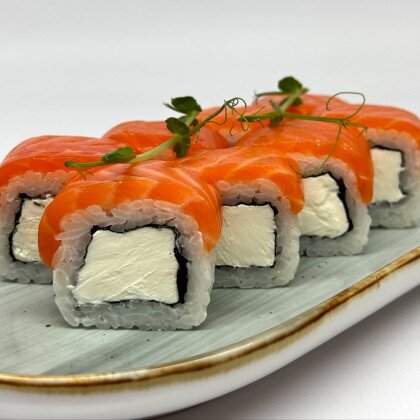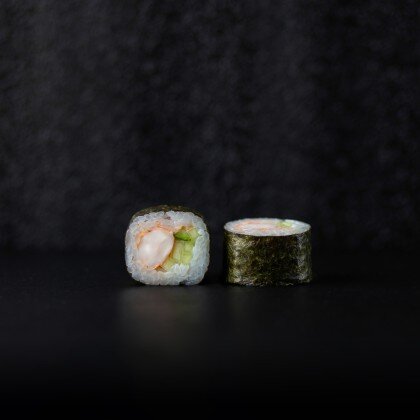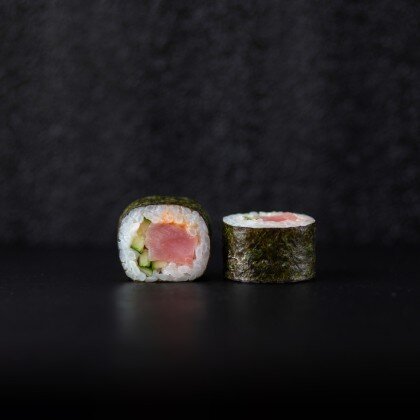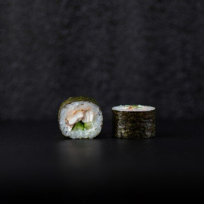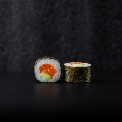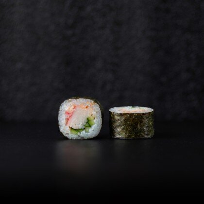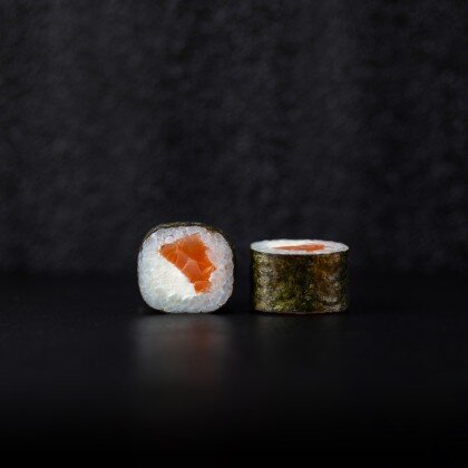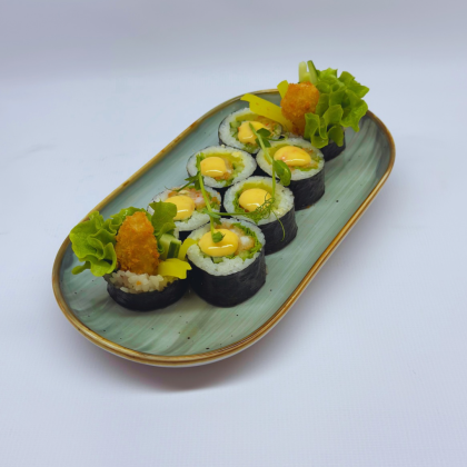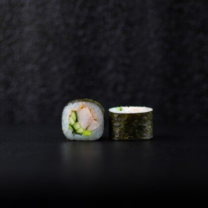 Водоросли нори, рис для суши, лосось, огурец, фирменный spicy соус (острый).