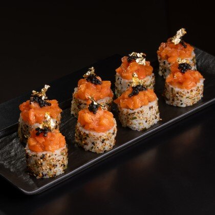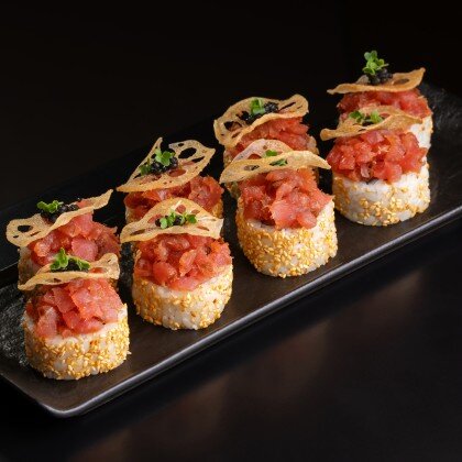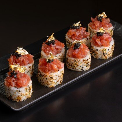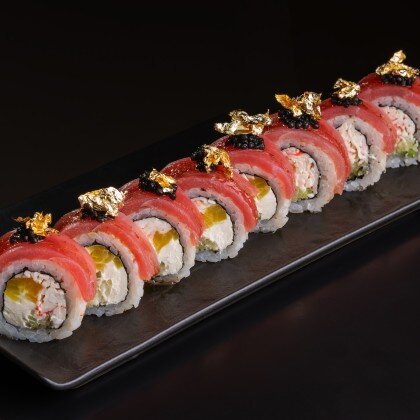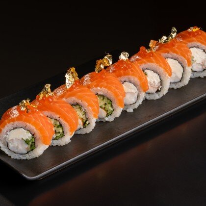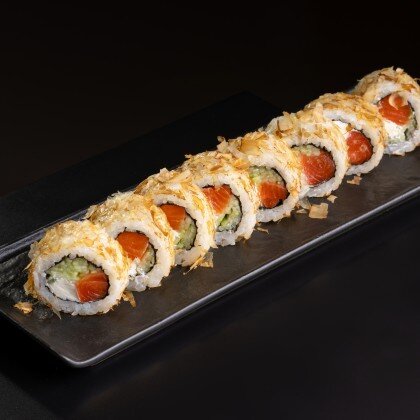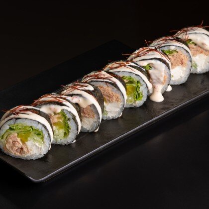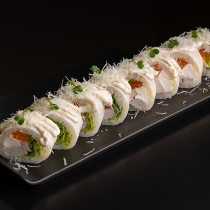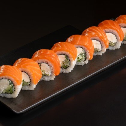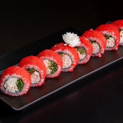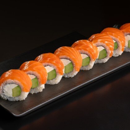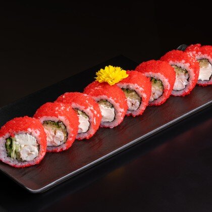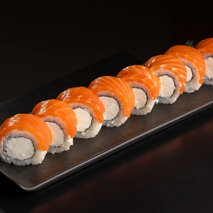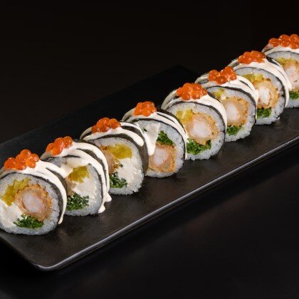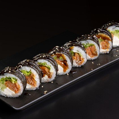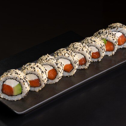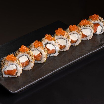 Водоросли нори, рис для суши, сыр творожный сливочный, семена кунжута.